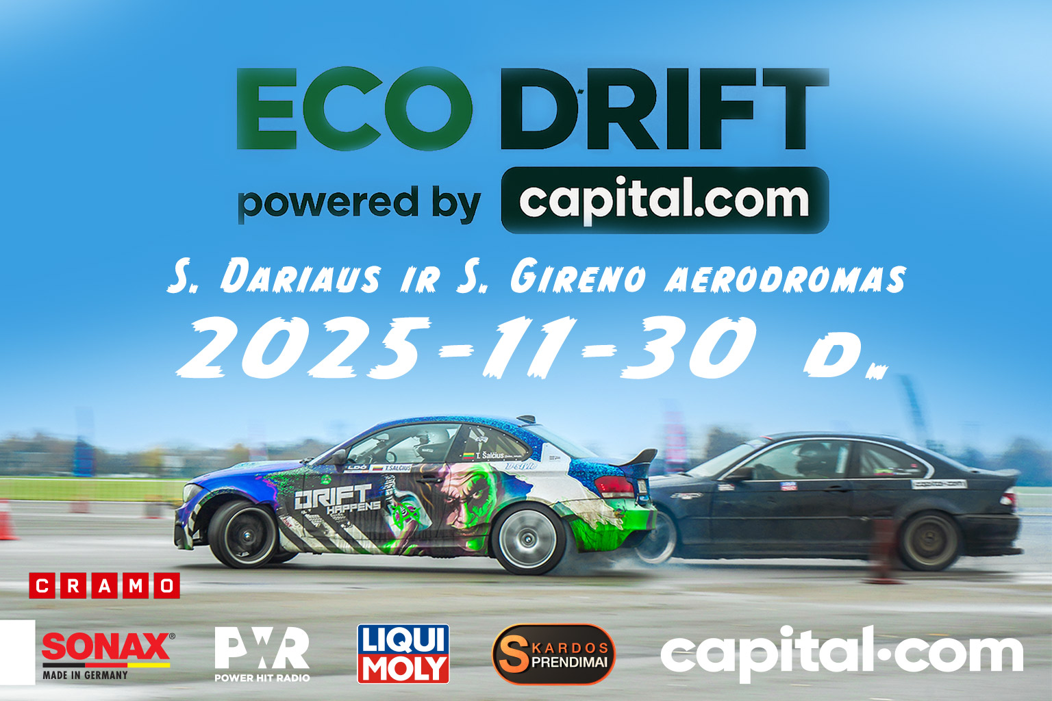 Lapkričio pradžioje įvyko pirmasis „Eco Drift powered by Capital.com“ renginys, subūręs 34 pilotus – 32 iš įvairių Lietuvos miestų, vieną svečią iš Latvijos ir vieną iš Jungtinės Karalystės. Renginio metu žiūrovai galėjo išvysti ne tik įspūdingus slydimus, bet ir išskirtinius automobilius – Nissan 300Z, S13, 350Z, BMW F serijos ir daugybę kitų technikos šedevrų.